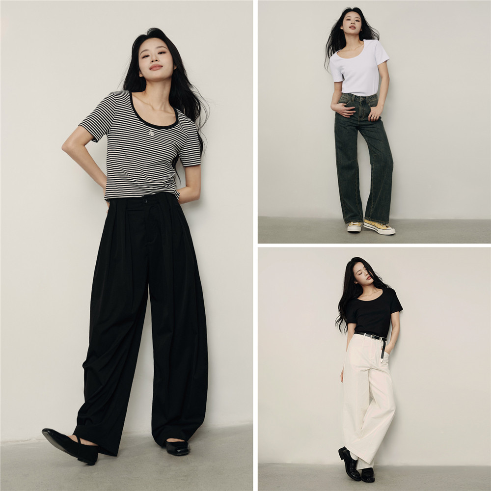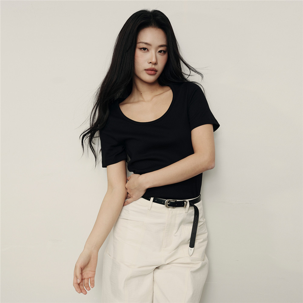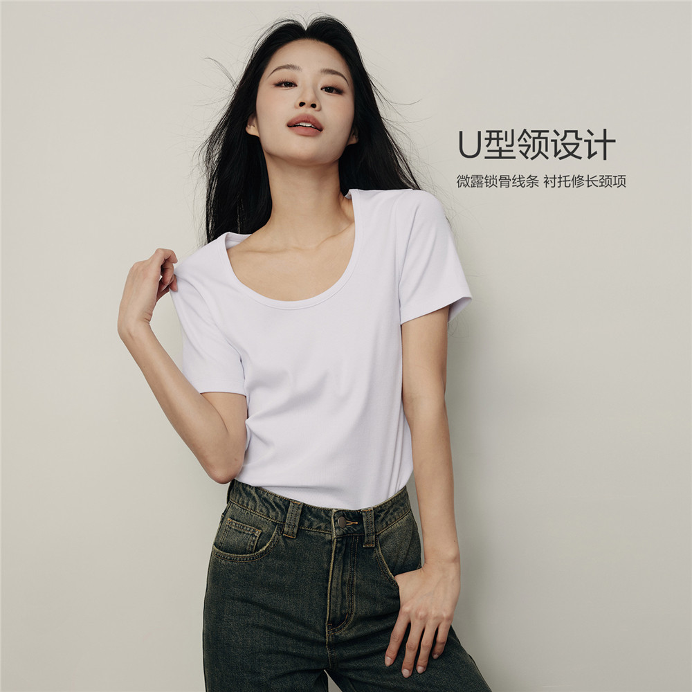 佐丹奴【韩国明星同款】夏季新款弹力U型领修身短袖T恤女05325557