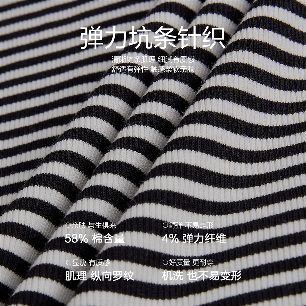 坑条面料舒适有弹 修身U型领时尚显瘦