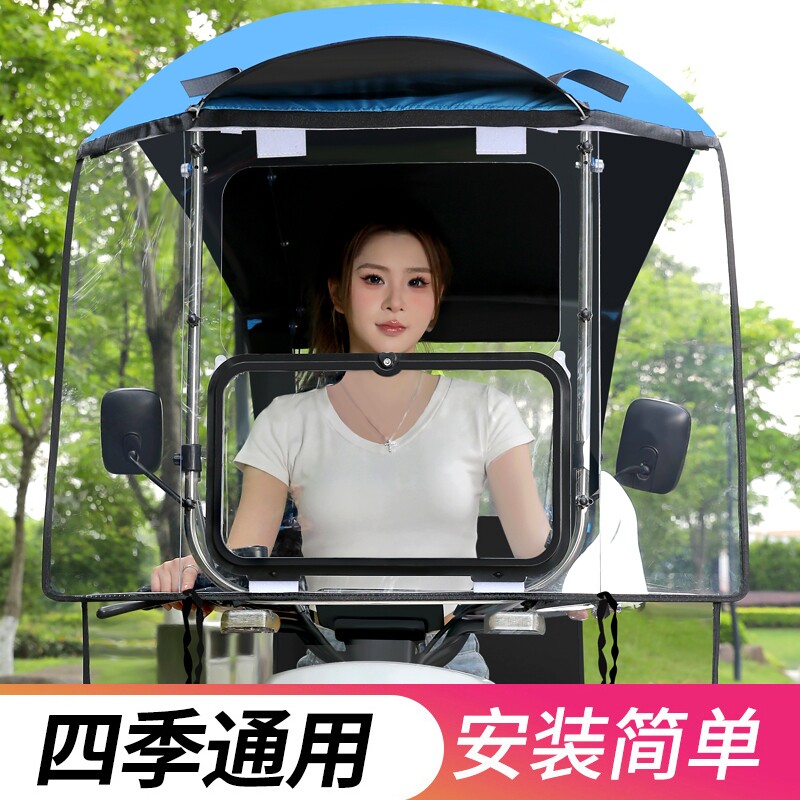 2025电动车遮雨棚新款可折叠收缩摩托车挡风罩遮阳一体电瓶车雨伞