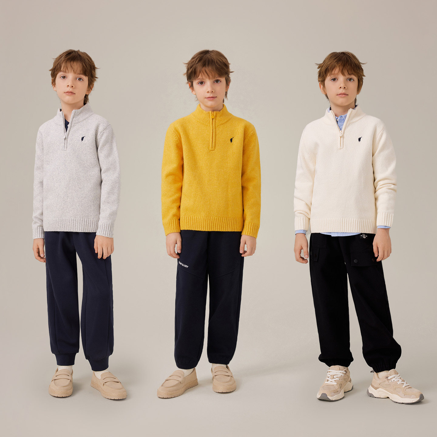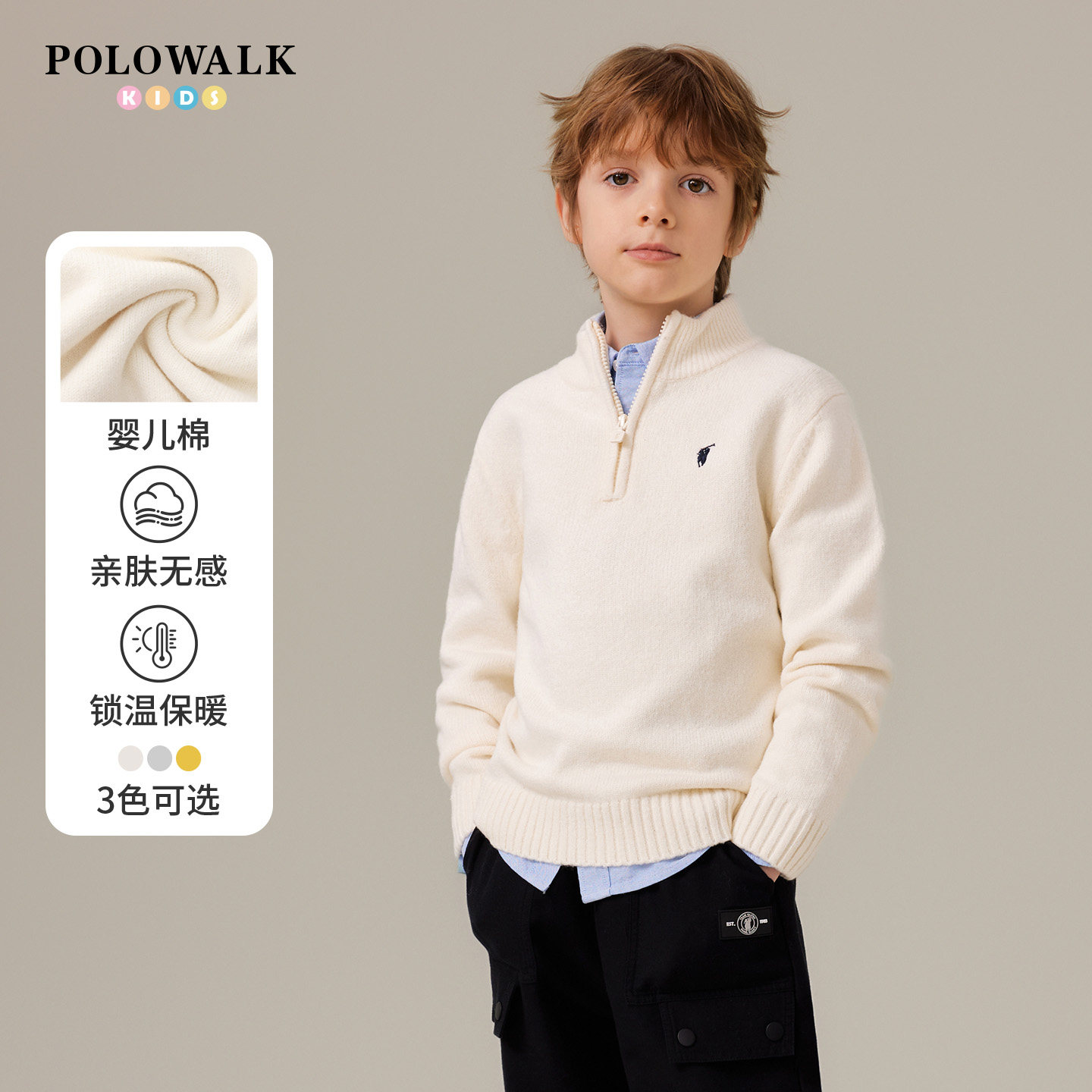 POLOWALK童装男童长袖针织衫2025秋冬新品毛衣简系中高领套头外套