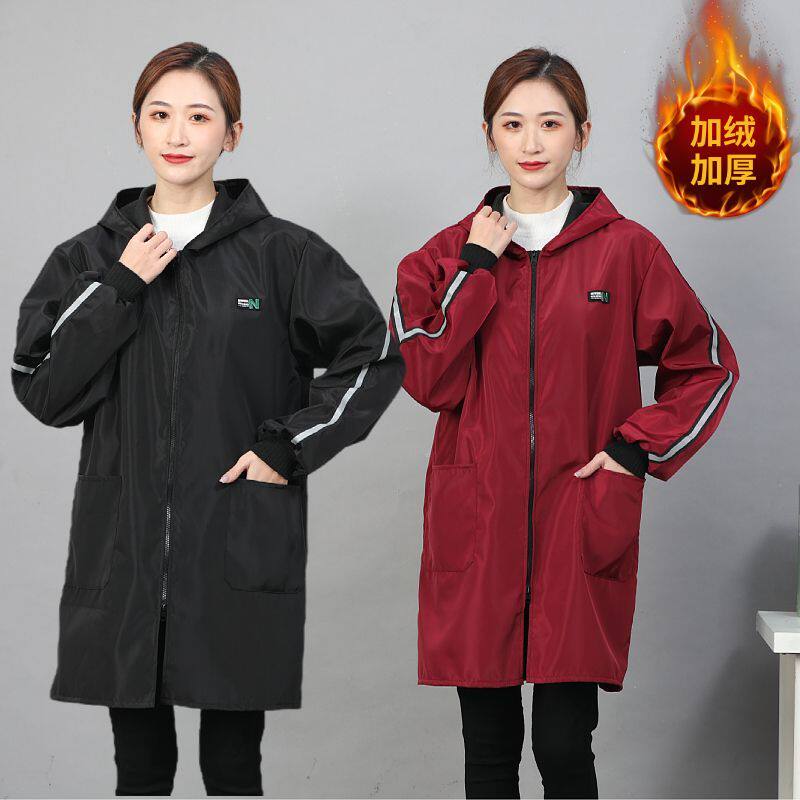 冬季加绒罩衣大人加厚长袖围裙防水韩版女时尚外套家用工作服定制