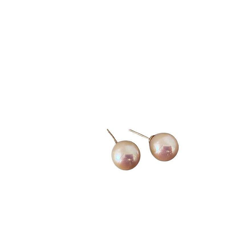 999纯银耳钉女施家珍珠馒头珠耳环扁圆高级气质法式复古轻奢耳饰