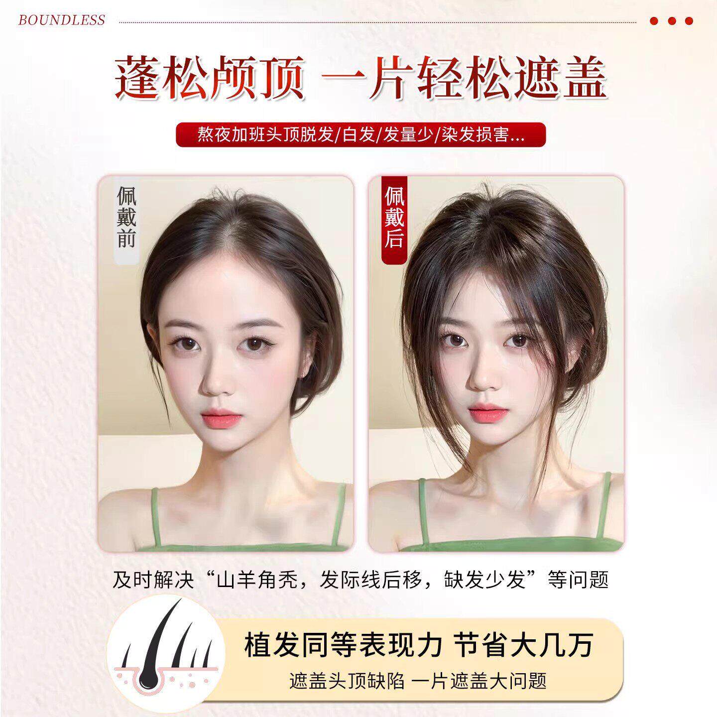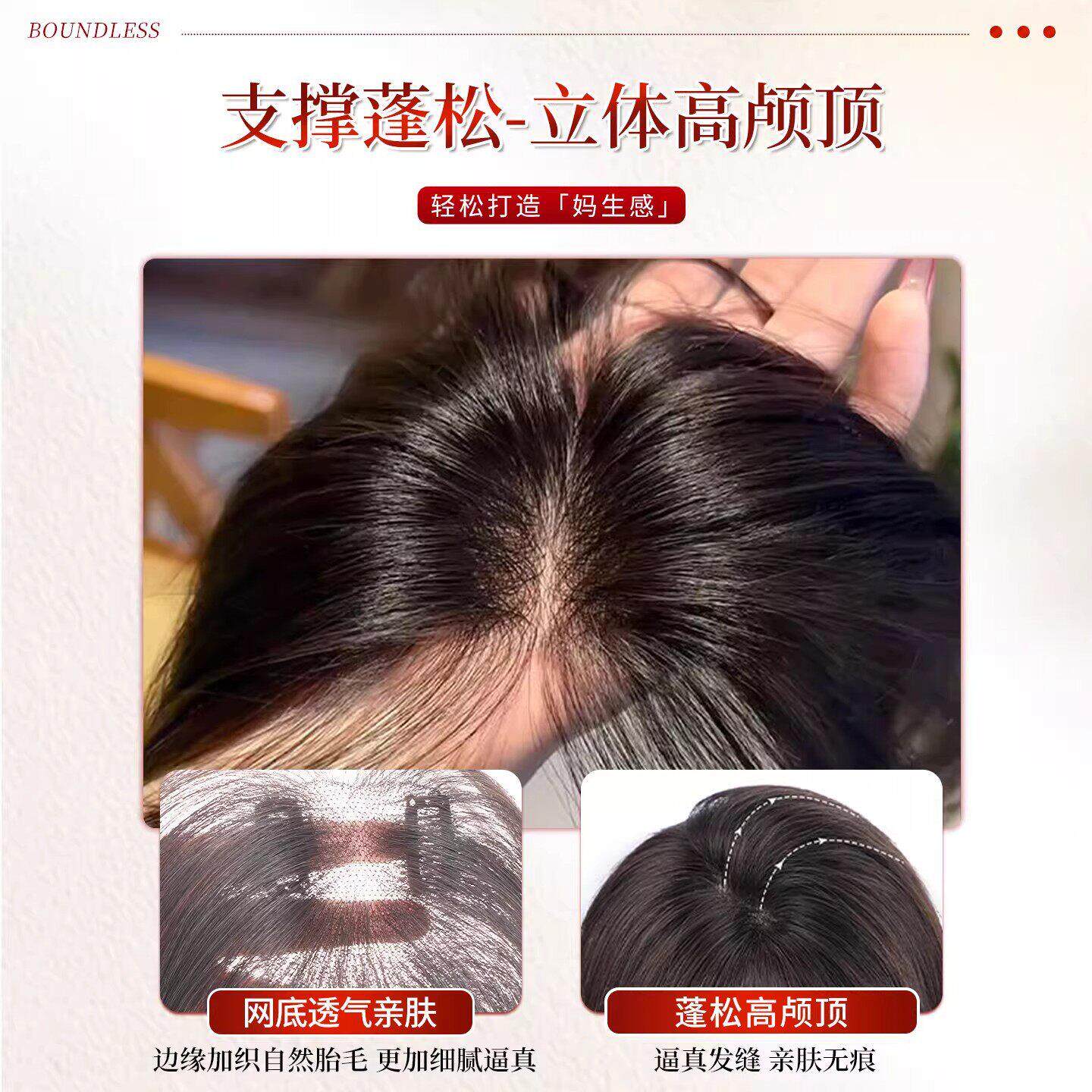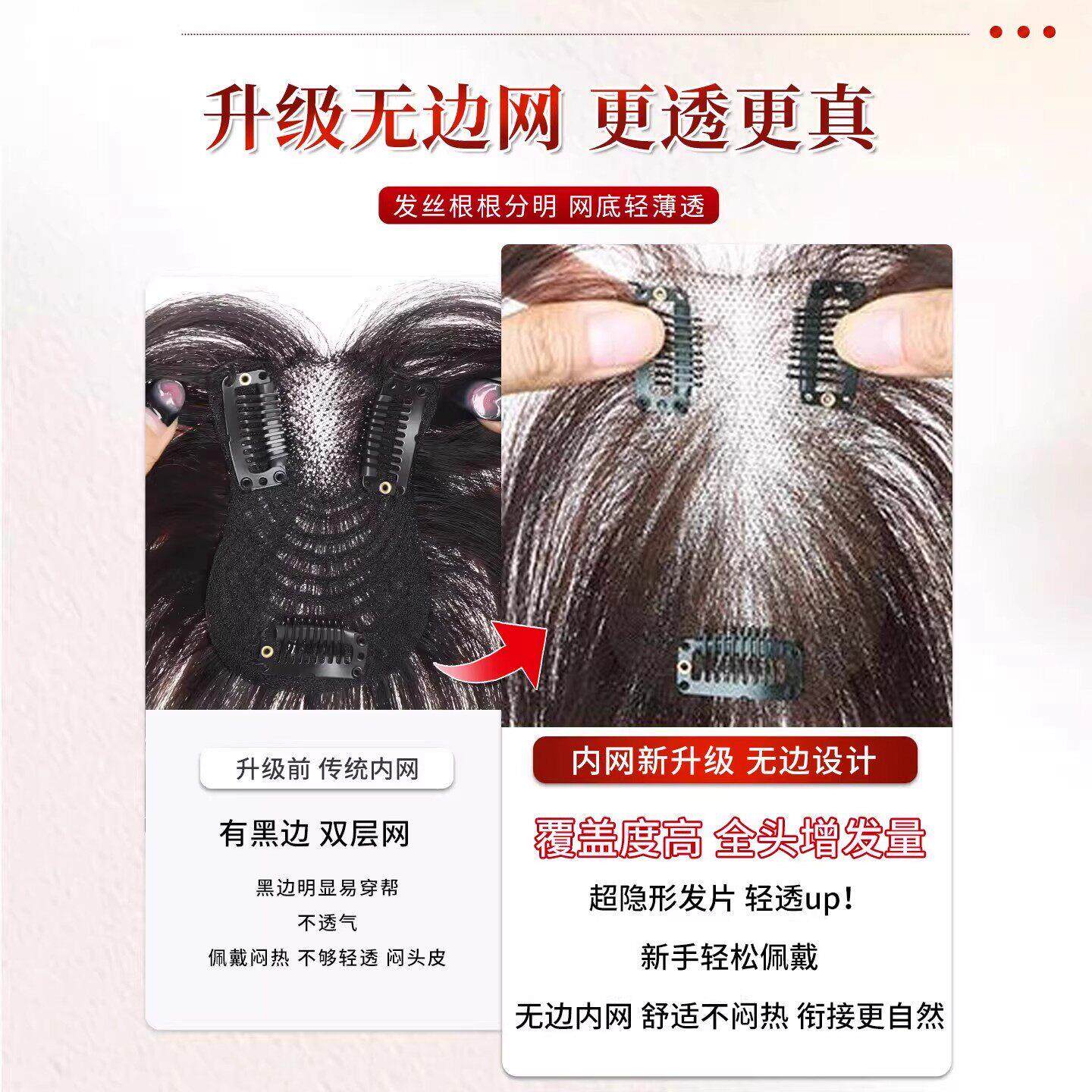 假发女片头顶真发增发量蓬松颅顶无痕轻薄遮白发隐形自然刘海补发