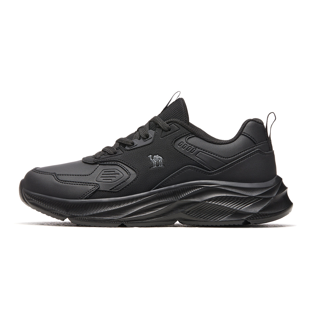 乔丹冬季皮面加绒防水运动鞋男鞋跑步鞋减震轻便软底黑色爸爸跑鞋