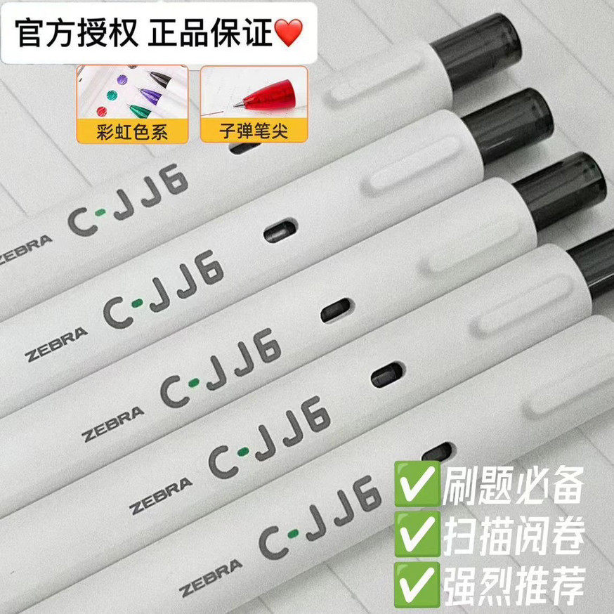 日本zebra斑马中性笔cjj6刷题笔日系ins按动黑笔考试0.5白色杆C-JJ6大众高颜值文具旗官方舰店官网