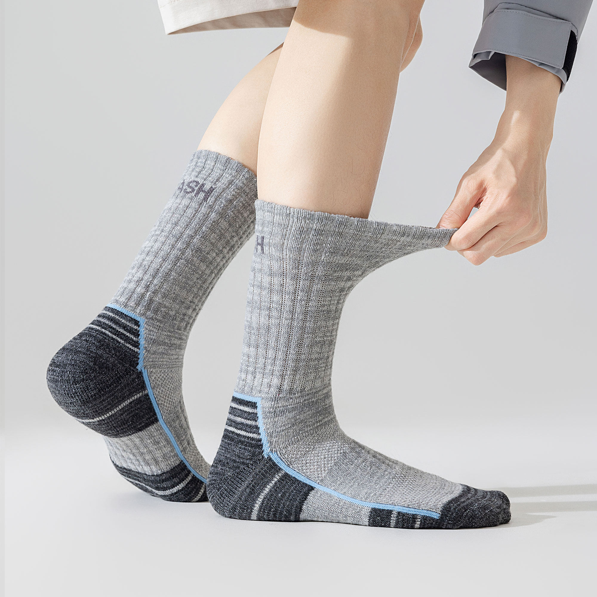 江狗男士袜子秋冬季户外骑行羊毛中筒袜加厚保暖吸汗柔软运动袜子