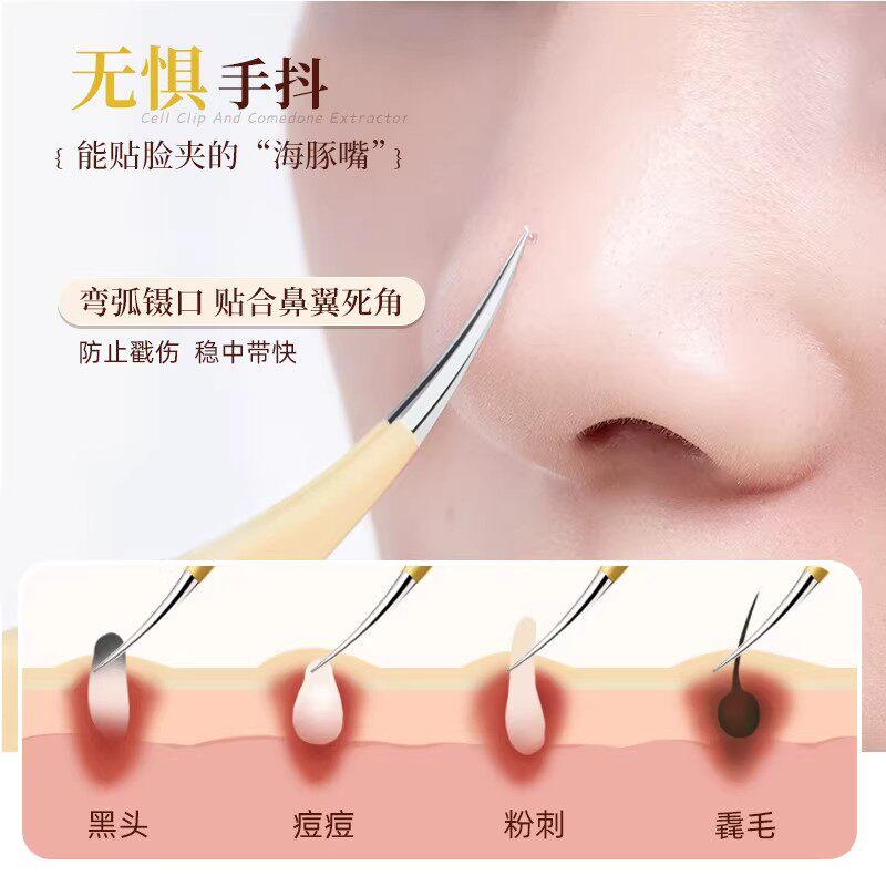 尔木萄细胞夹海豚夹粉刺针高精密专业去黑头镊子超尖细美容院专用