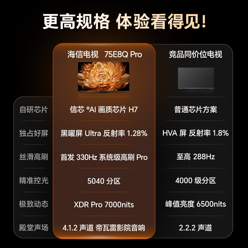 海信电视E8Q Pro 75英寸 U+MiniLED 信芯H7 世界杯电视机以旧换新