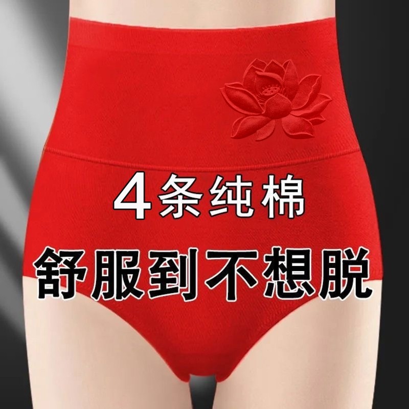 收腹纯棉内裤女提臀高腰大码本命年大红色女士三角裤头抗菌健康