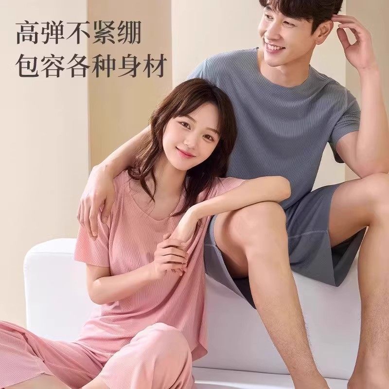 【下单立减30】情侣款凉感睡衣夏季冰丝螺纹薄款居家长裤可外穿