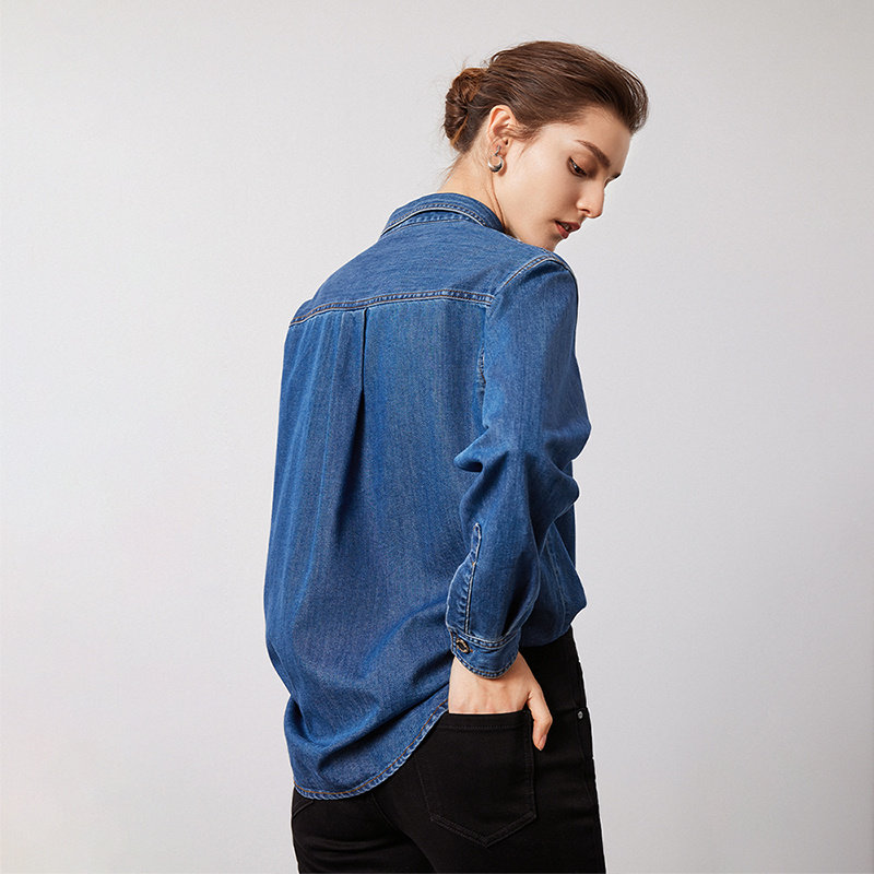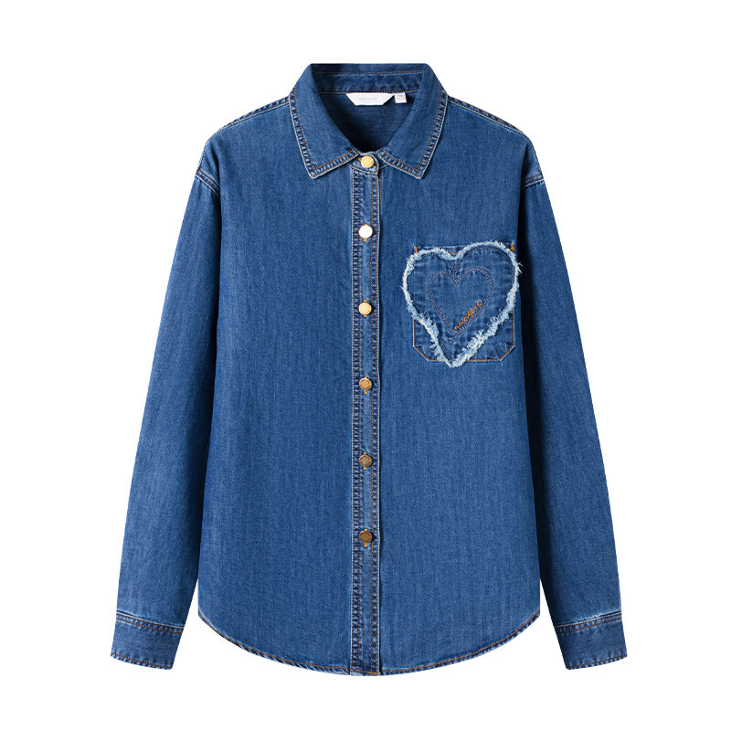 Navigare意大利小帆船蓝色工装牛仔衬衫女秋季新款休闲衬衣外套
