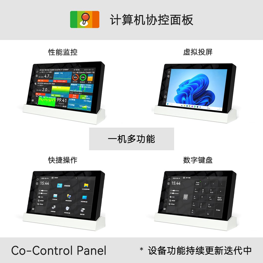电脑性能监控 7寸多功能触屏 电脑副屏 智能桌搭 计算机协控面板