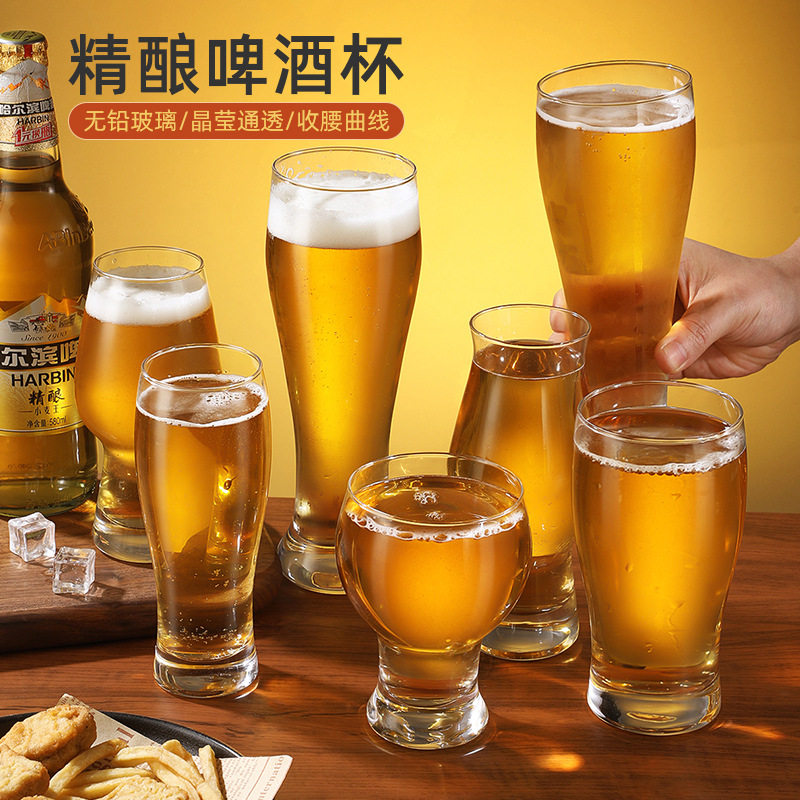 精酿啤酒杯大容量玻璃杯子家用网红创意酒吧小麦扎啤杯商用500ml