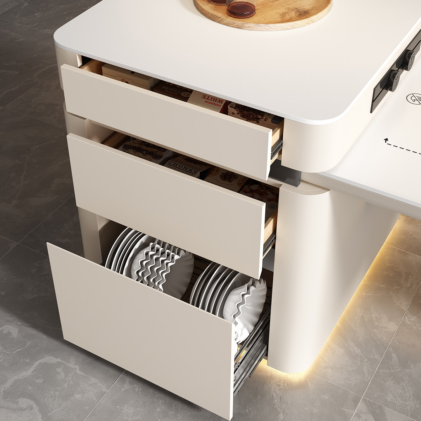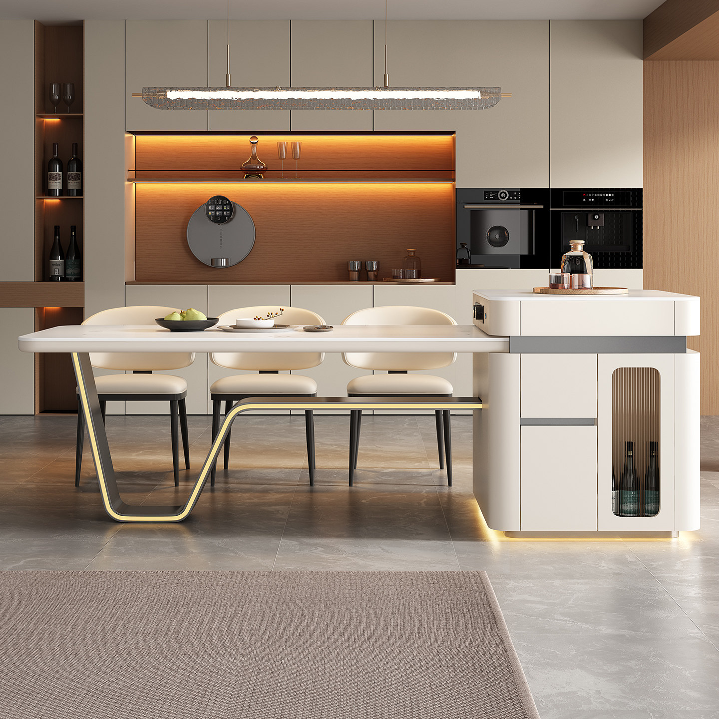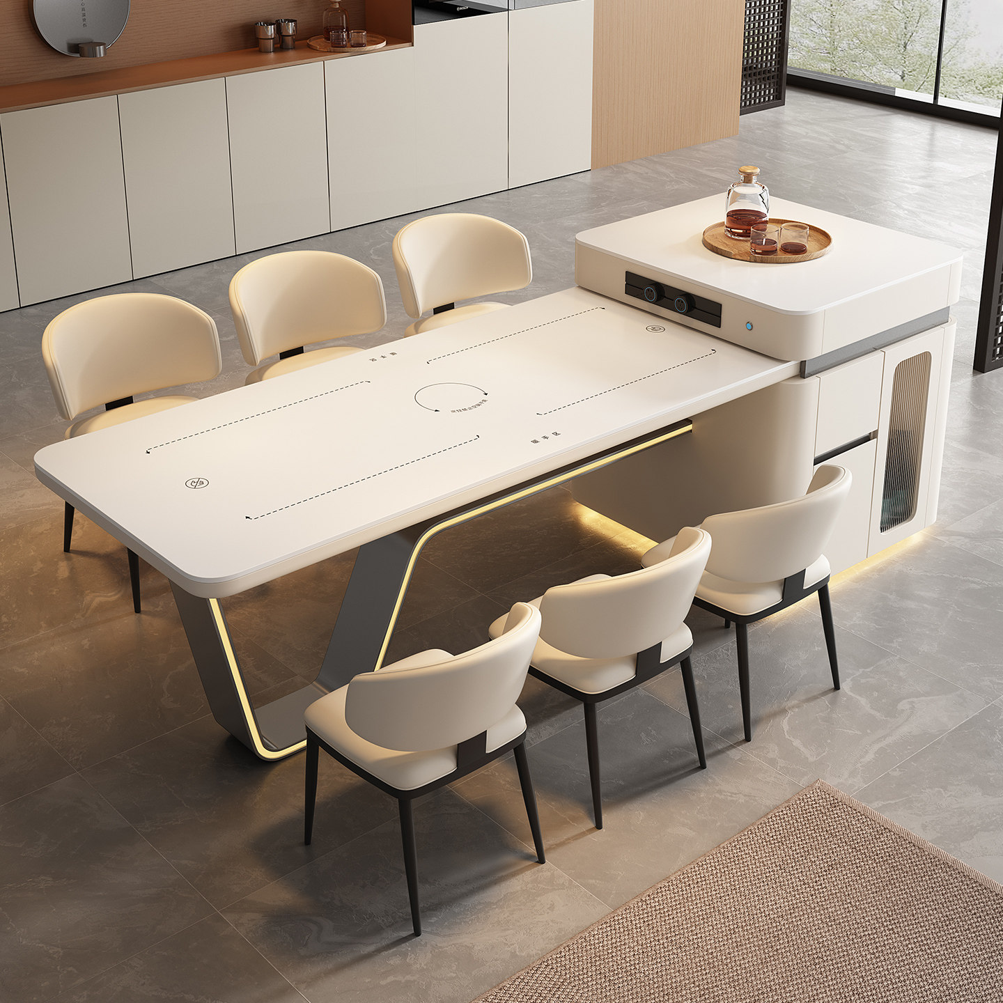 2026年新款高端智能龙抬头岛台餐桌一体客厅家用V字脚多功能餐台