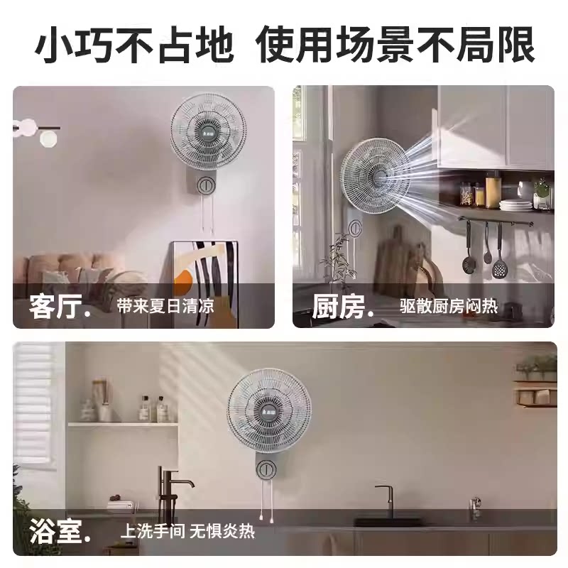 志高免打孔壁扇家用强力大风力挂壁式电风扇摇头小型挂壁风扇宿舍