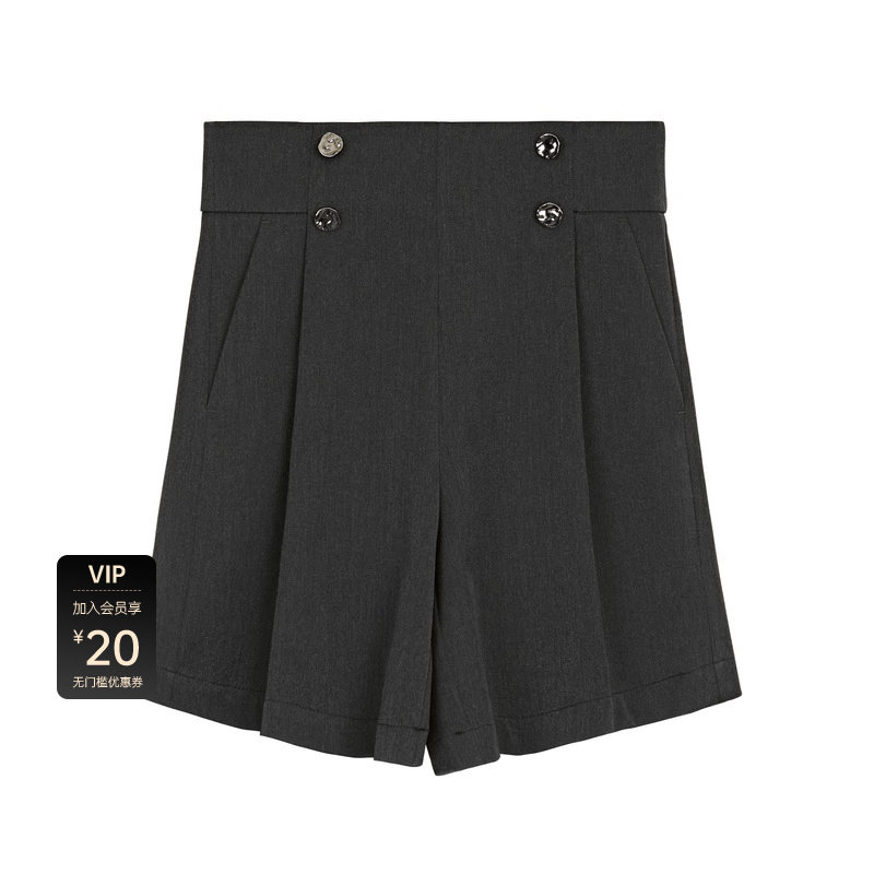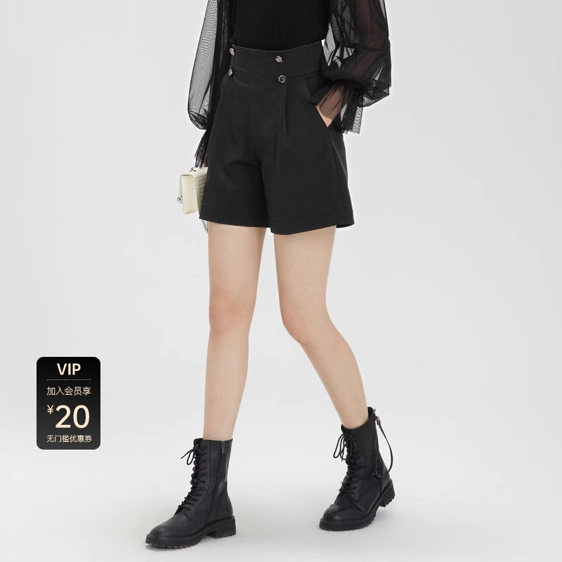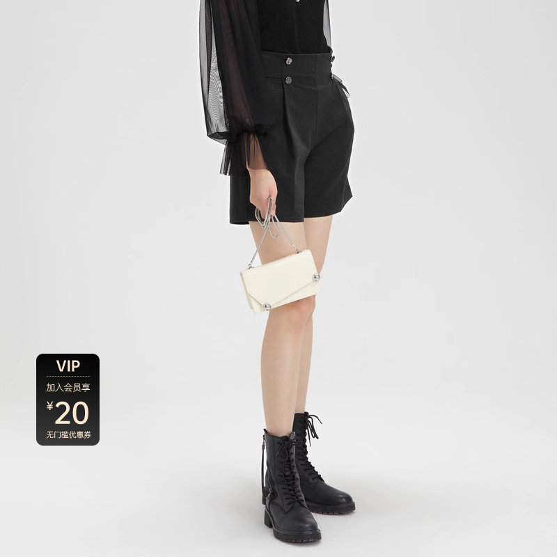 高腰短裤 垂坠直筒 OL风