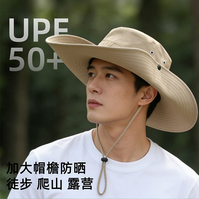 西部牛仔帽男渔夫帽女爬山沙漠防晒帽户外露营遮阳帽子徒步登山帽