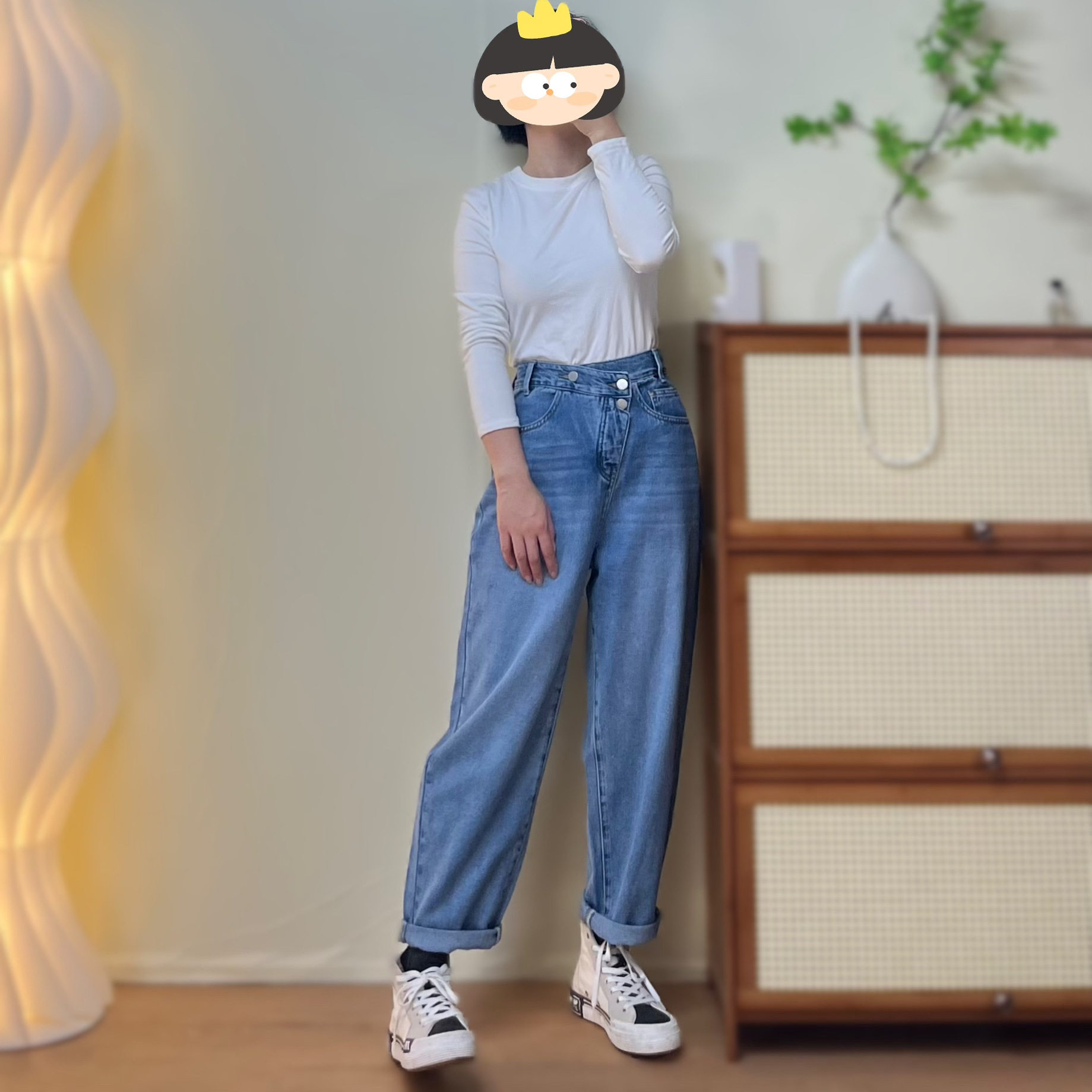 【清仓NO退换】高腰牛仔裤女宽松阔腿垂感萝卜裤梨型身材哈伦裤
