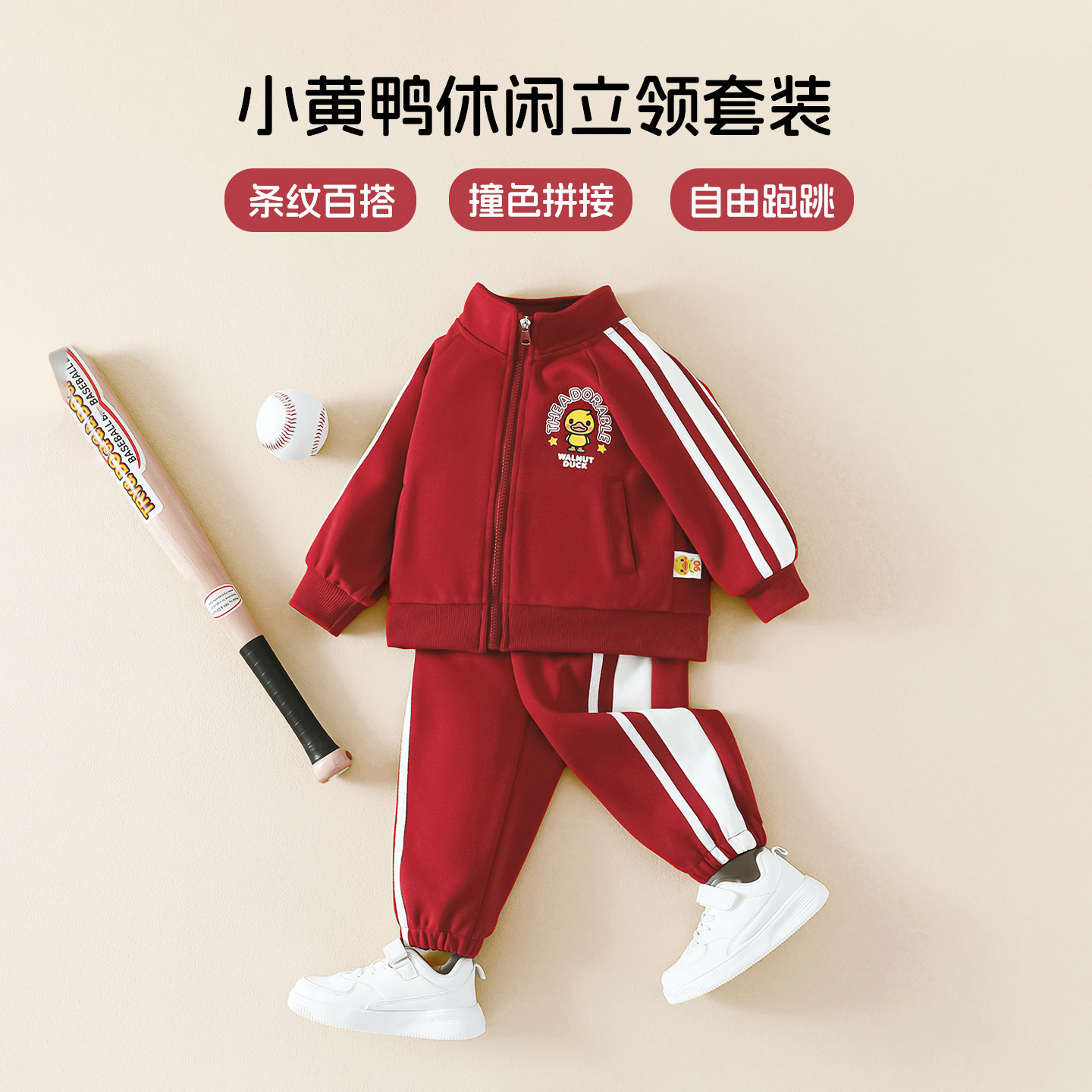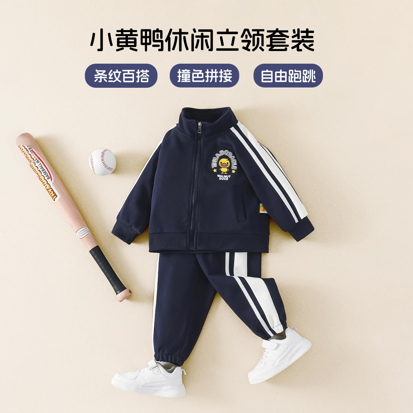 小黄鸭童装儿童套装秋季新款男童女童休闲运动套装外套裤子两件套