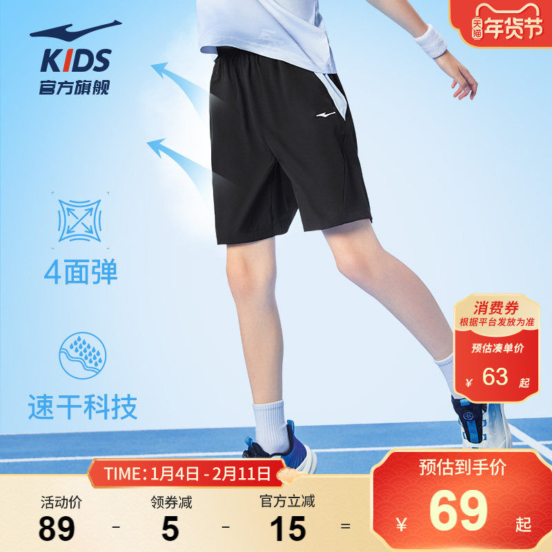 鸿星尔克童装男童短裤夏季薄款中大童儿童裤子速干裤五分裤运动裤