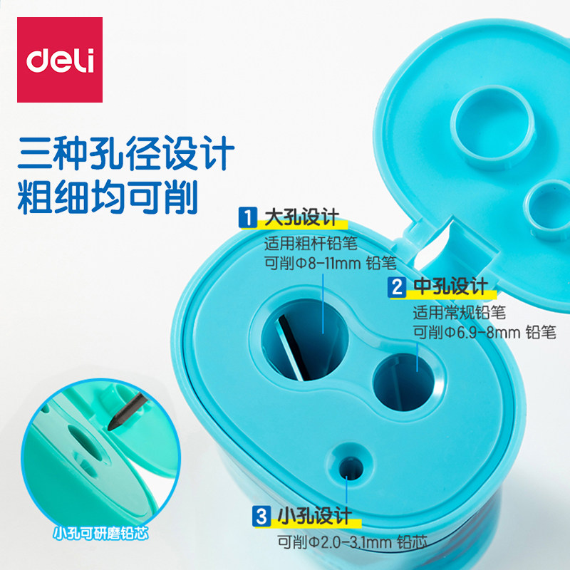 得力卷笔刀大口径削笔器可削加粗洞洞笔幼儿园学生迷你三孔转笔刀