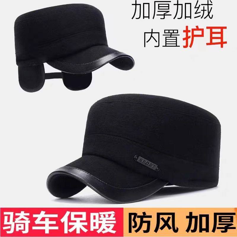 中老年保暖男士帽子皮边秋冬老年人老人老头帽鸭舌帽平顶加绒骑车