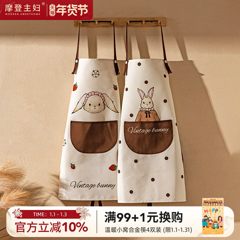 摩登主妇赫拉兔围裙厨房家用2025新款女高级感年轻款防水防油做饭
