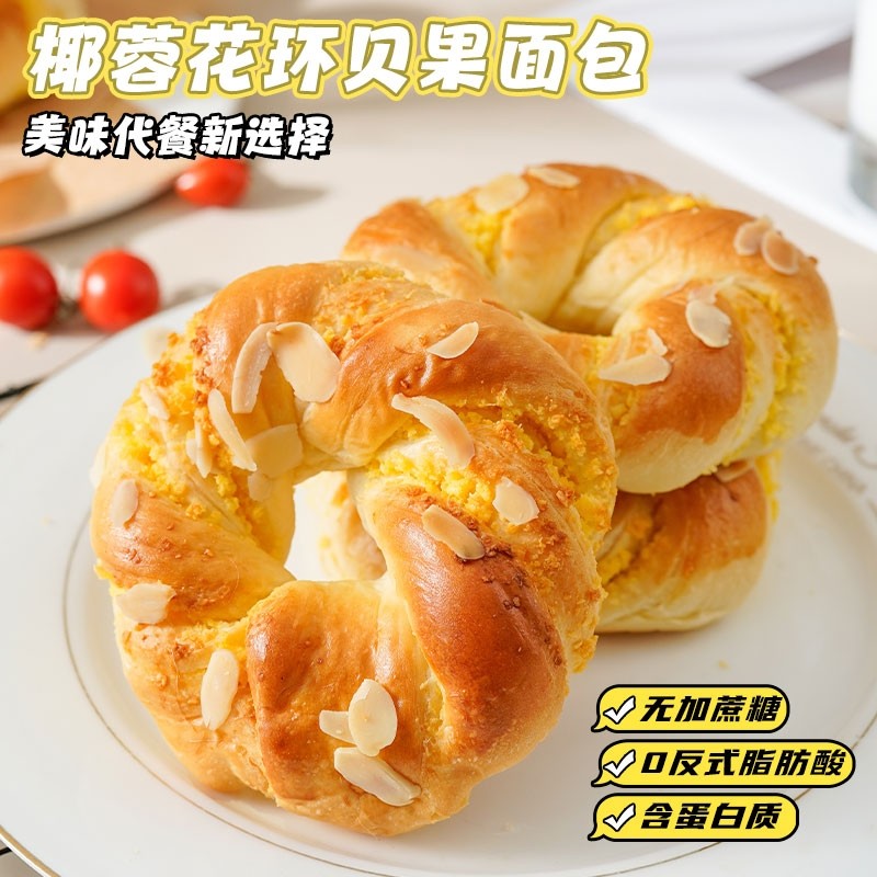 无蔗糖椰蓉花环贝果手撕面包甜甜圈整箱营养早餐下午茶休闲零食品
