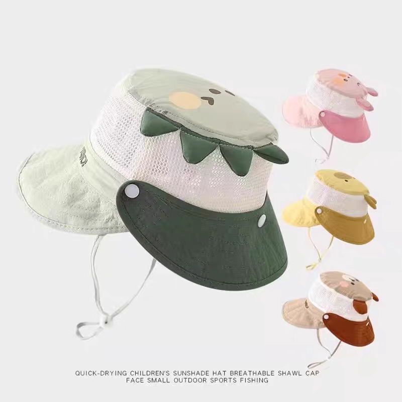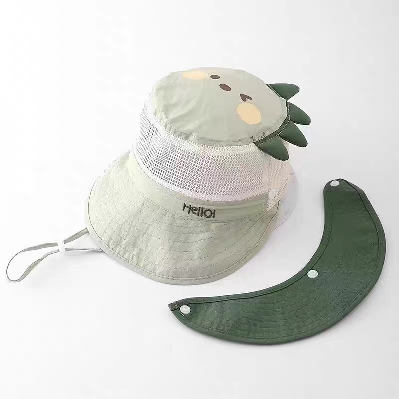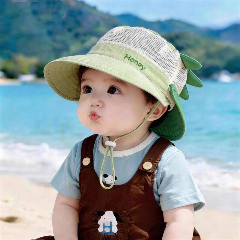 宝宝帽子夏季网眼渔夫帽男童女婴儿大檐披肩防晒遮阳帽太阳帽薄款