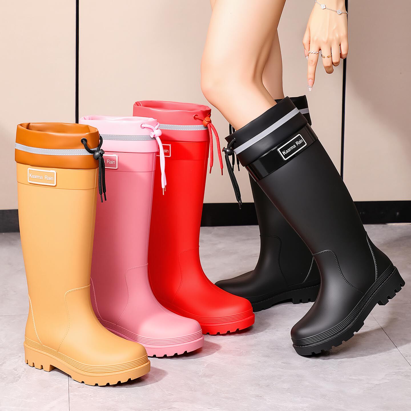 户外束口高筒雨鞋雨靴长筒大童过膝上学专用男童女童防滑防水水靴