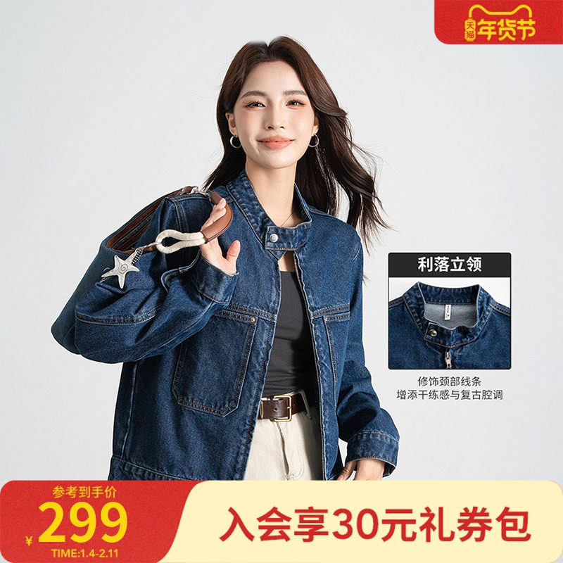 热风女士摩登复古港风牛仔外套秋季质感潮流气质百搭休闲夹克上衣