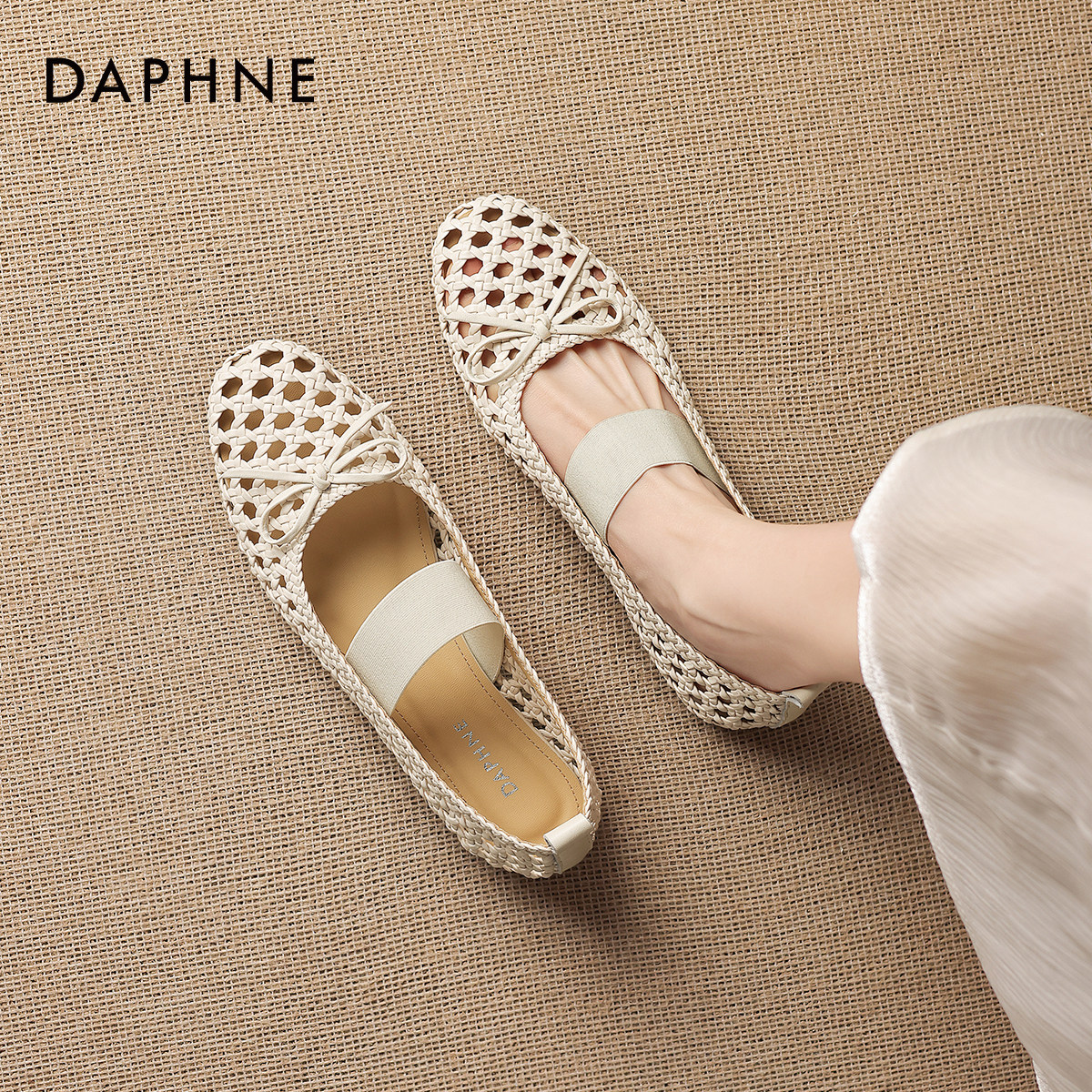 达芙妮浅口单鞋女2026年新款夏季法式编织玛丽珍女鞋平底镂空凉鞋