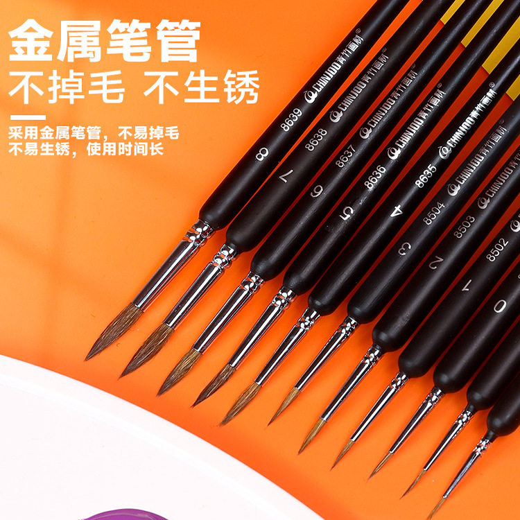青竹画材狼毫勾线笔美术专用画笔套装极细画画笔描边颜料水粉水彩特细毛笔丙烯油画描画笔国画唐卡描绘笔小号