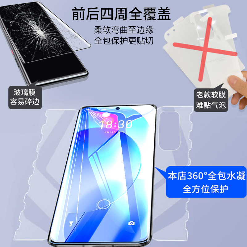 魅族18钢化水凝膜18pro一体前后全包膜Meizu18s全屏覆盖抗蓝光18spro手机膜十八por原装18x保护贴膜全胶软膜