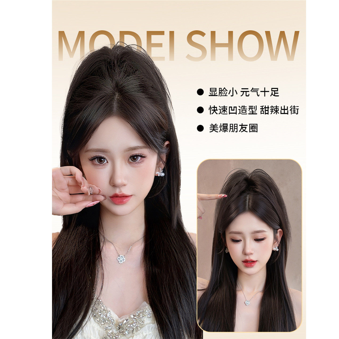 马尾假发女仿真发抓夹式瀑布半扎马尾辣妹高颅顶增发量假发辫发型