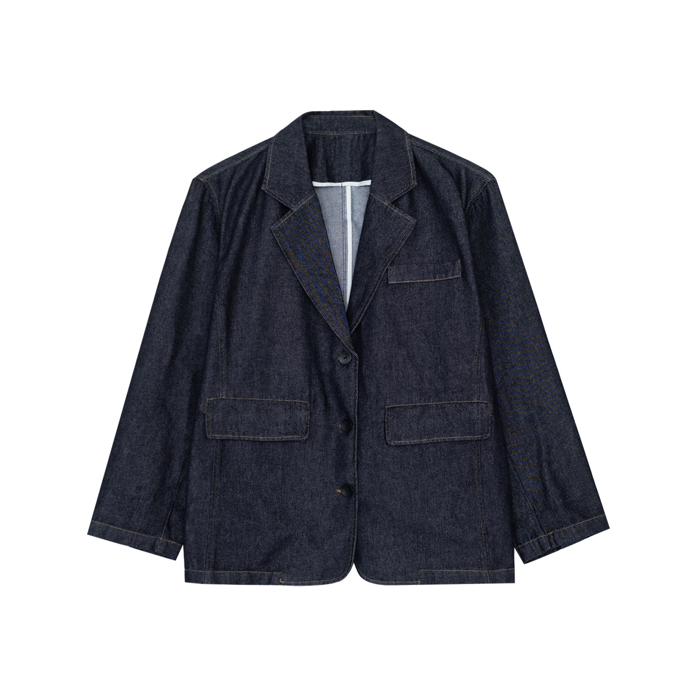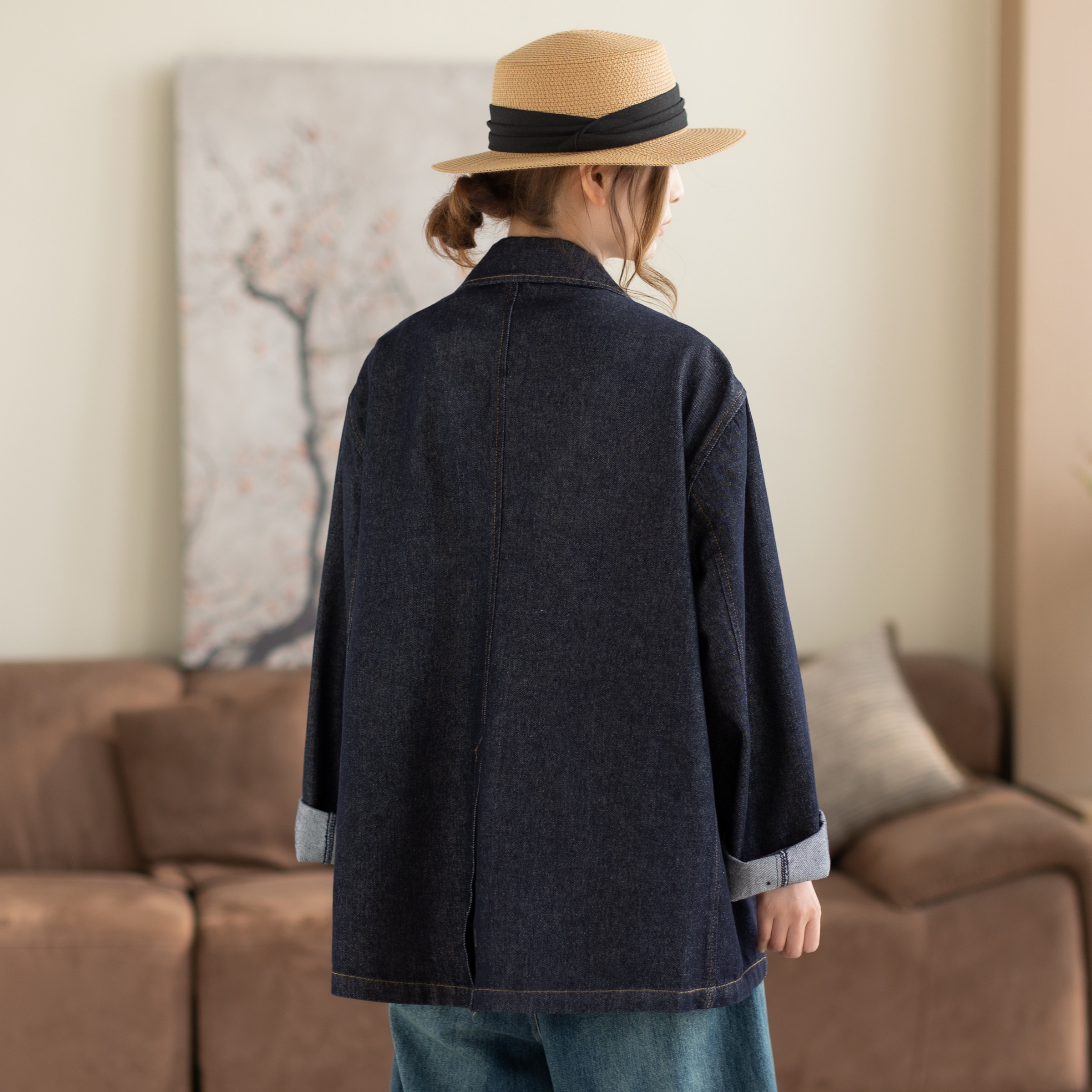 咖咪羽简约气质设计感复古原色水洗牛仔西服春秋新款宽松外套女