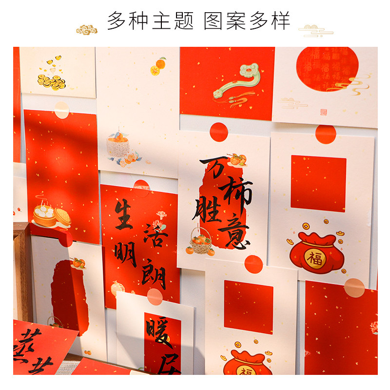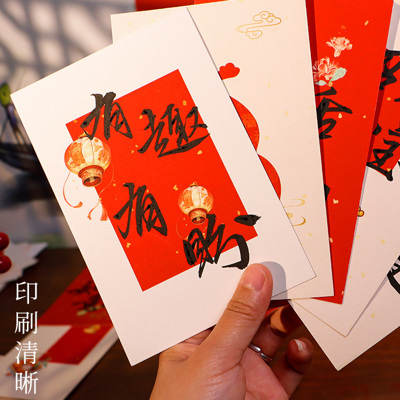 2026马年新款新年贺卡明信片贴纸春节喜庆氛围墙面装饰布置墙贴宣纸卡纸桌面装饰相框硬卡书法diy文创摆件
