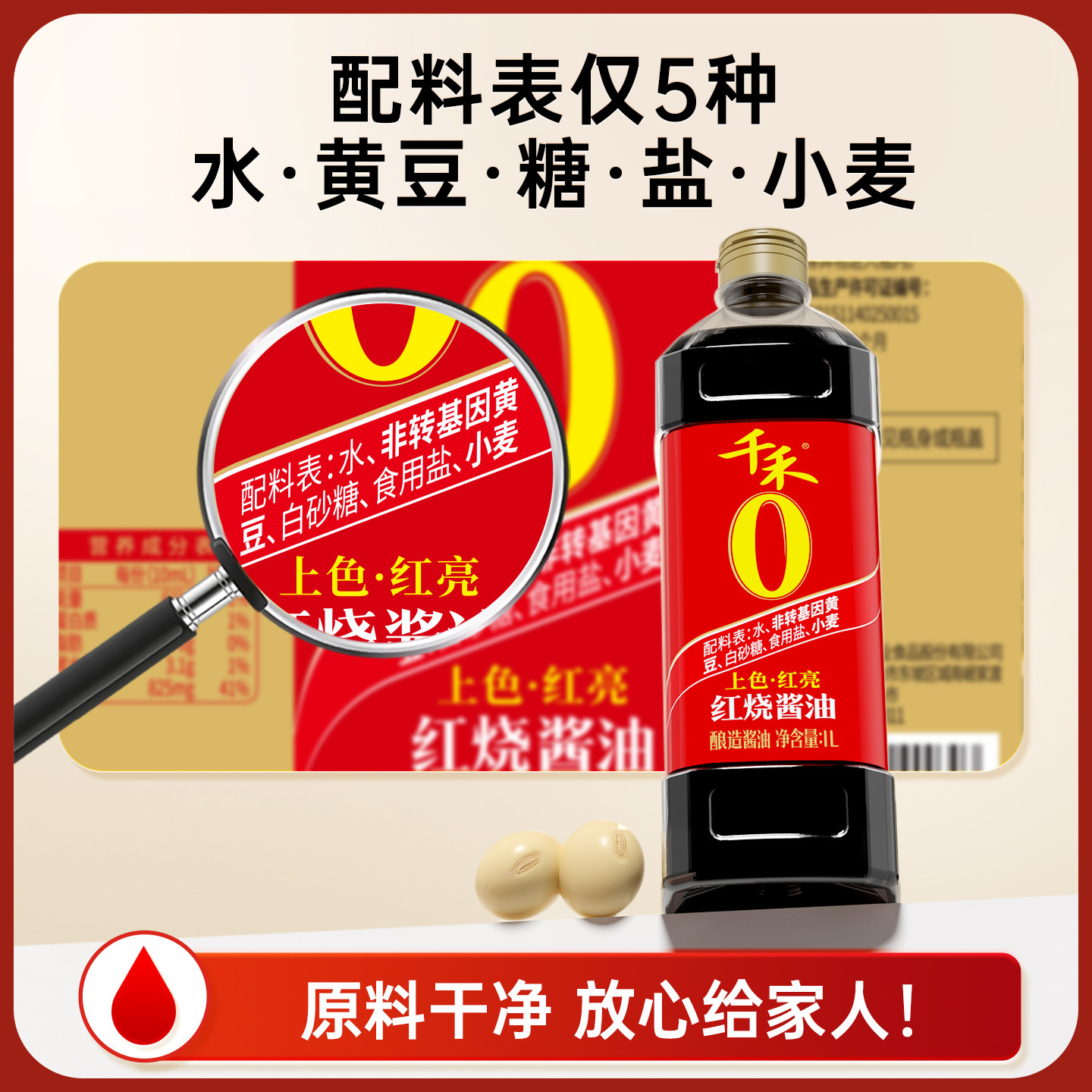 千禾酱油上色红烧酱油1L厨房调味品炒菜红烧红亮酿造家用黄豆味精