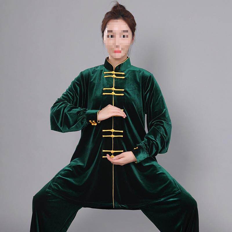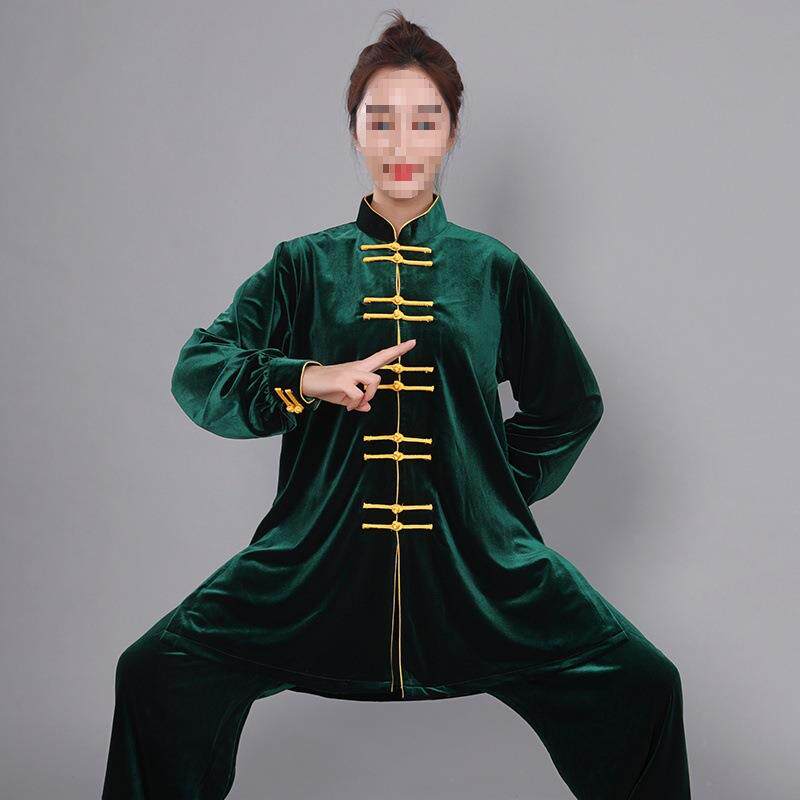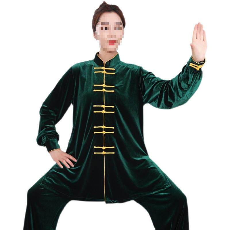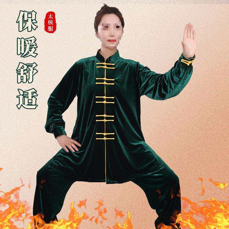 中长款金丝绒南韩绒太极服武术表演服练功服男女拳服秋冬加厚保暖