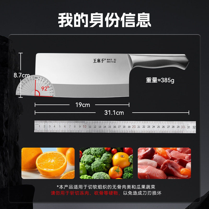 王麻子菜刀家用切片切菜切肉砍骨刀大全厨师专用厨房斩切两用刀具