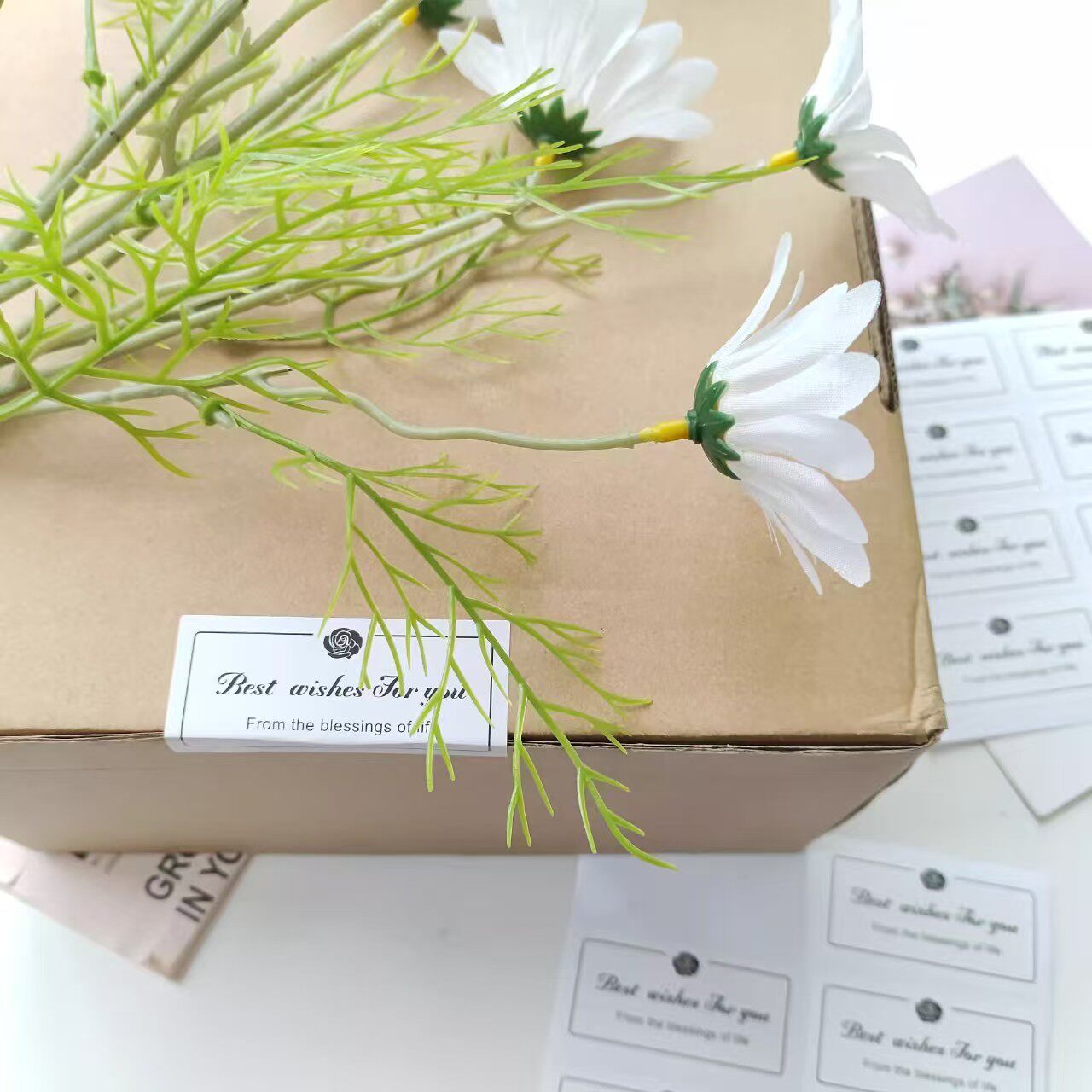 100贴/卷长条牛皮纸封口贴飞机盒装饰封口便捷易撕不干胶