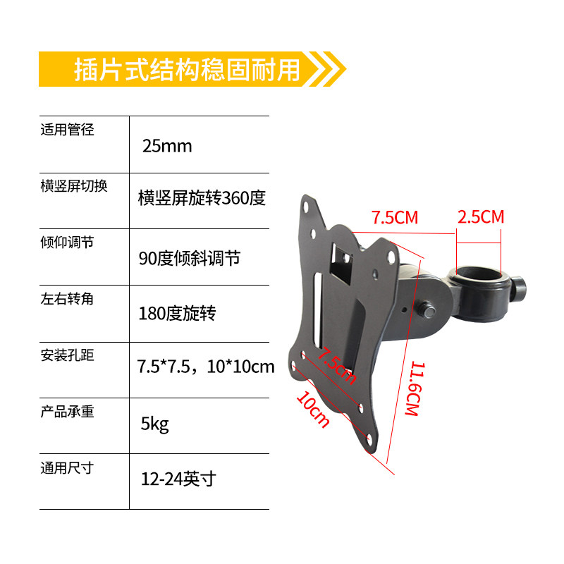 配件显示器支架子横竖屏旋转套管子2.5厘米12-24英寸显示器安装头