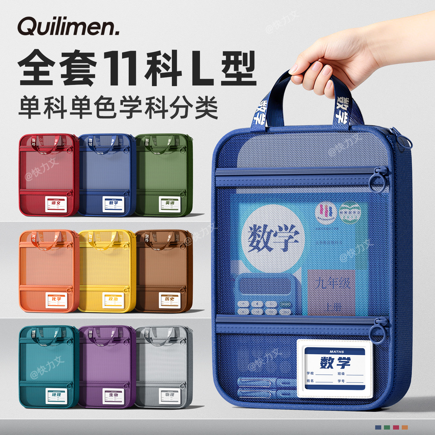 科目分类文件袋透明拉链式a4收纳拎书课外班作业男女孩书包小学初中生l型考试试卷学科补习网纱手提袋大容量