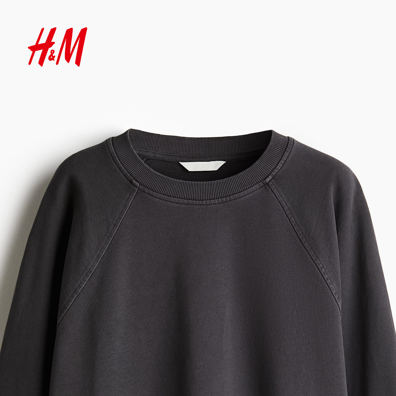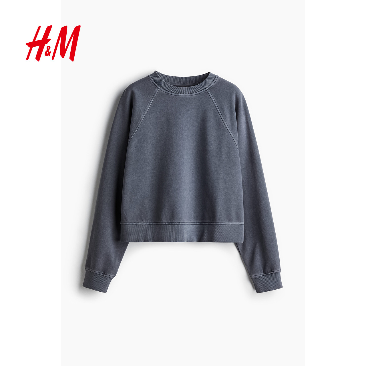 HM女装卫衣春季水洗棉质大廓形插肩圆领美式卫衣1257454
