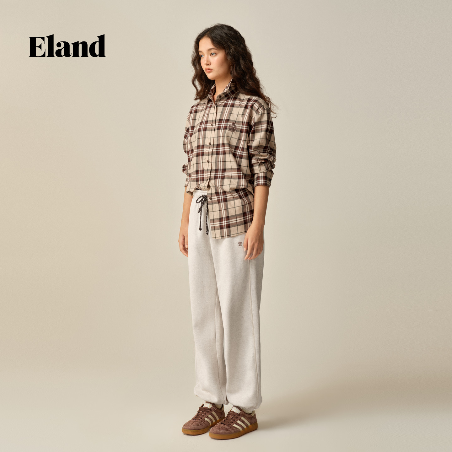 【100%棉】Eland衣恋衬衫女时尚撞色格纹上衣2025冬季新