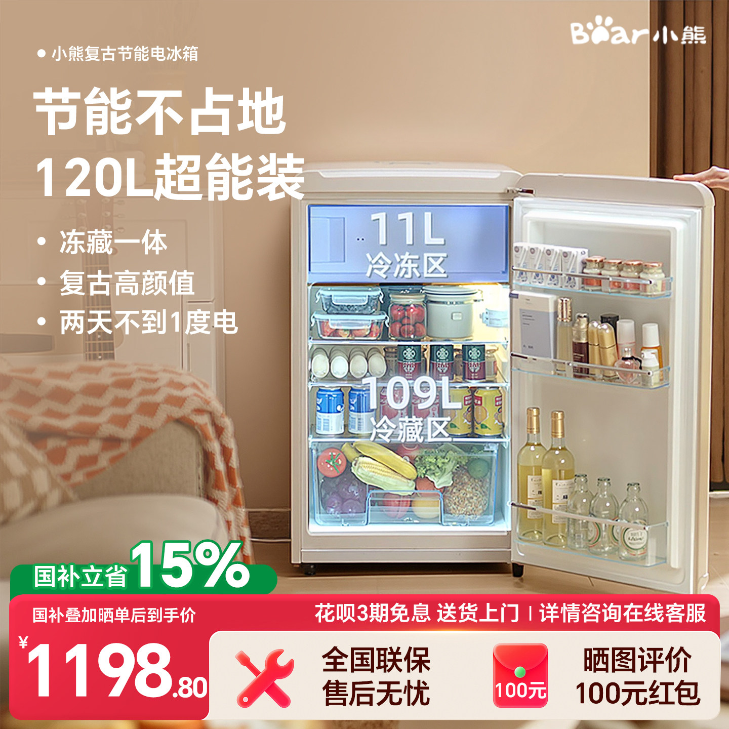 小熊120L复古小冰箱迷你家用小型办公室客厅冷冻冷藏高颜值冰吧