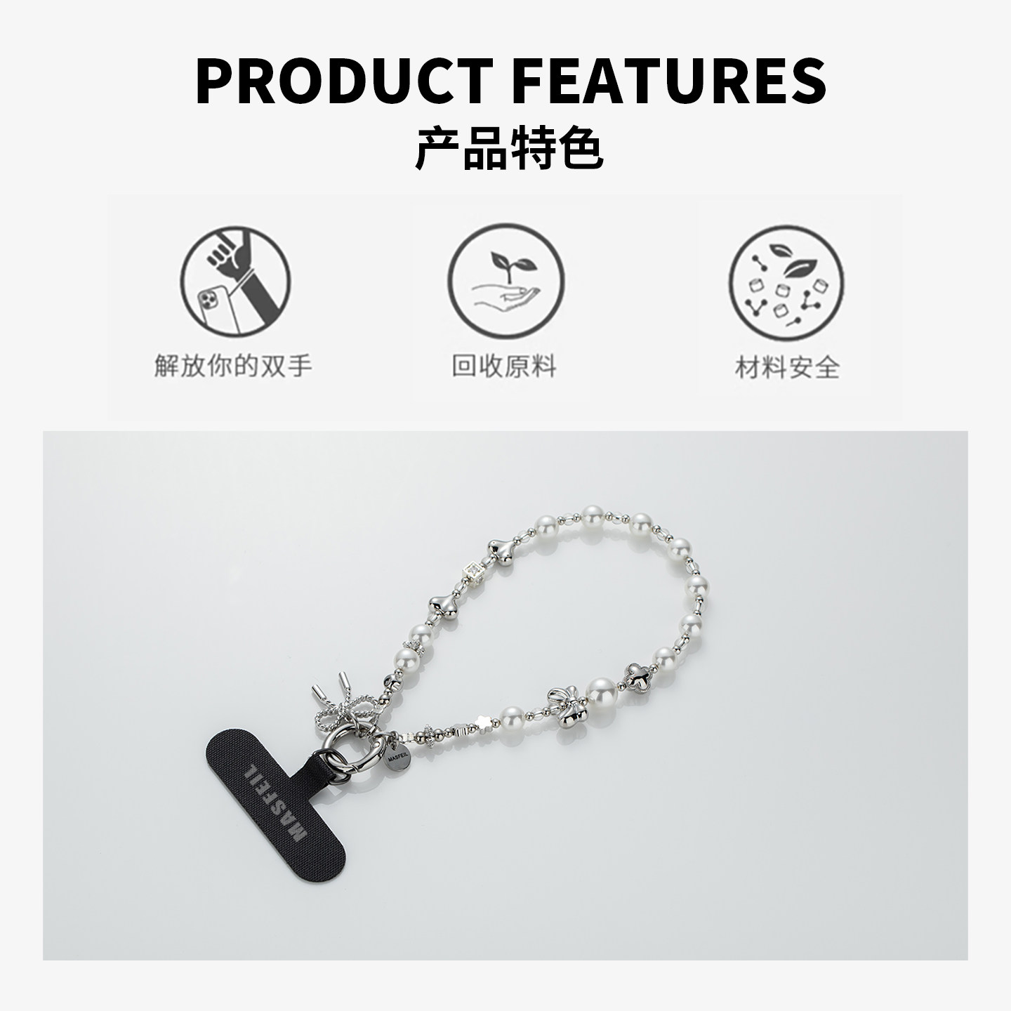 MASFEIL × 纯白恋曲手机挂链挂绳短款绳子适用苹果17手机壳配件包包挂件挂饰网红防丢迷你女生时尚创意高级