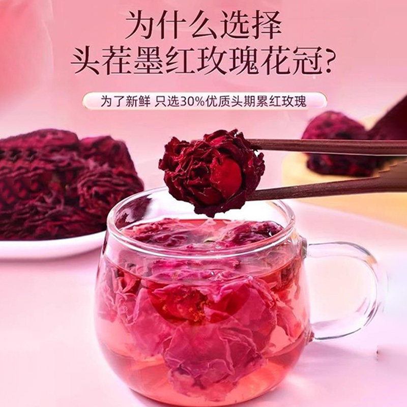 北京同仁堂云南墨红玫瑰花冠正品大朵冻干玫瑰花茶官方店50g食用