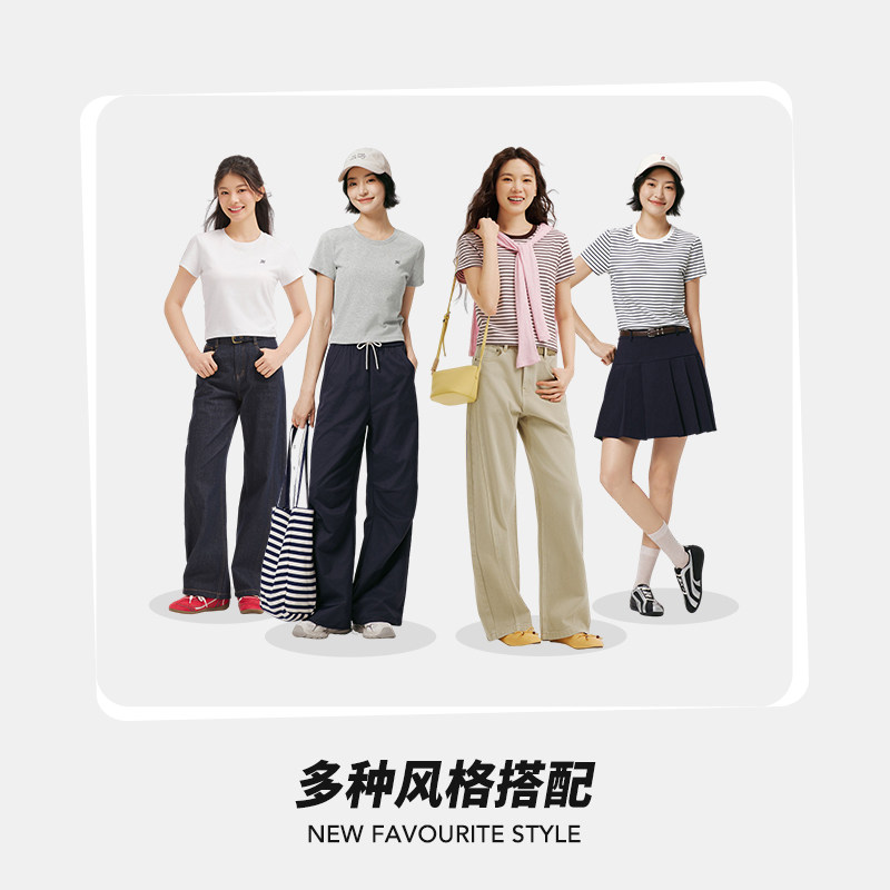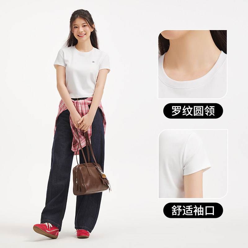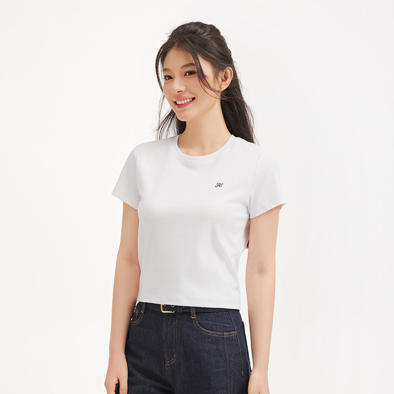 热风2026年春季新款女士修身圆领短袖T恤通勤风常规百搭上衣女