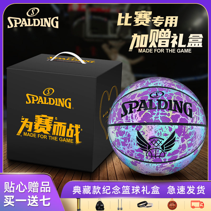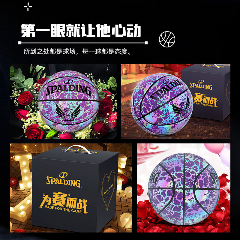 斯伯丁反光篮球系列生日礼物女友送男学生发光夜光荧专业七夕礼盒